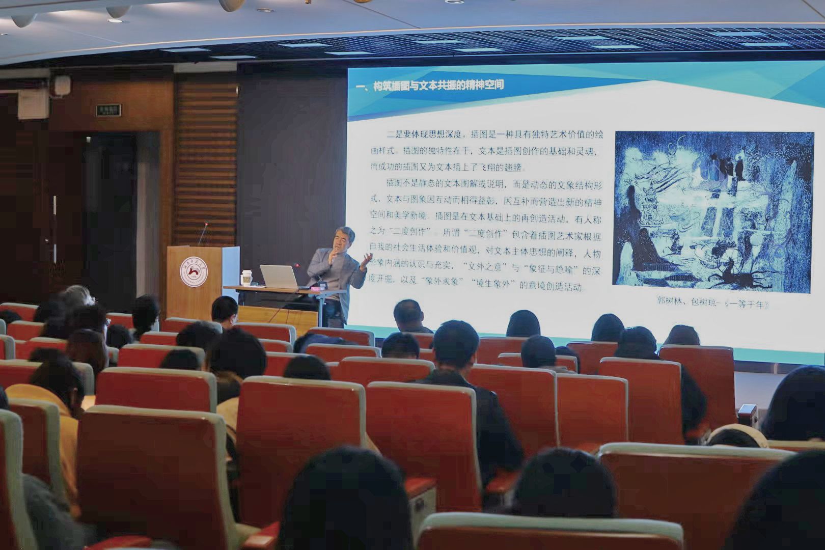 田忠利教授在本次讲座中主要提到了插图、书籍装帧和儿童图画书三个方面的内容。田忠利教授强调新一代插图画家在创作时要遵循发展规律,体现思想深度,加强跨界融合,将创作出兼具民族性、时代性、独立性、文化性的插图作为目标,加强插图与文本的融合,注重“读进去,走出来”的阅读和提炼过程。