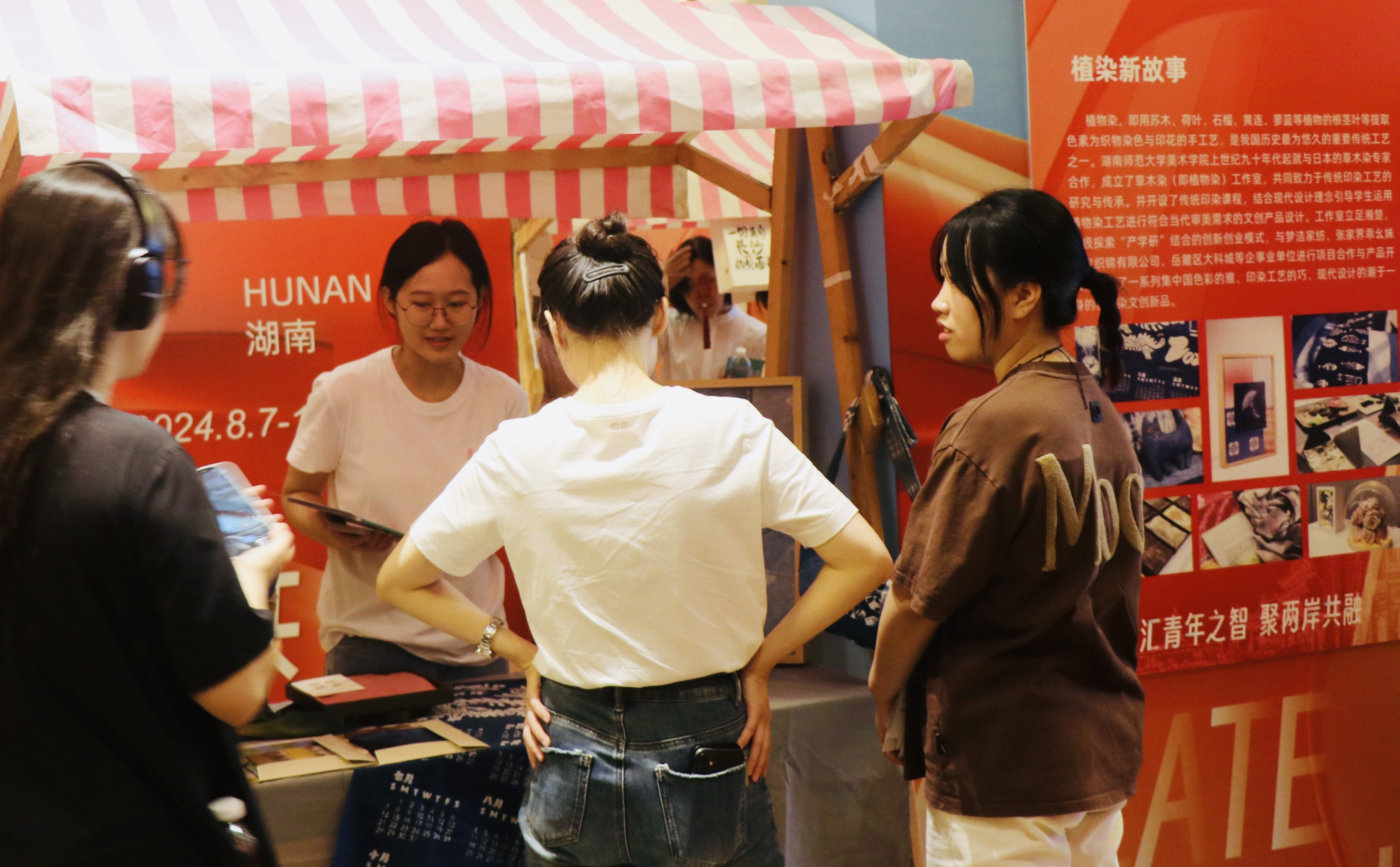 作为本次大会12家特邀文创展示单位之一,公司团队参与了本次大会开幕式青年朋友街展示、“青年奇妙夜”文创集市等活动。在苏丰、陈枫两位老师带领下,团队在主会场和都正街搭起展台展架,分别以“文物会说话”、“植染新故事”、“非遗万花筒”为主题,展示了公司文创团队近年来基于对湖湘地域出土文物与文化遗产的深入研究而创作的设计成果。公司的展示台吸引了众多与会嘉宾的关注。参观者们高度评价了这些作品,认为它们在展现湖湘地域深厚的历史文化底蕴的同时也通过创新设计为传统文化注入了新的活力。此次参展,不仅为公司师生提供了展示创意的平台,也彰显了公司在文化创意领域的影响力。未来,我院将继续深入推进设计赋能文创产业提升,助力中华优秀传统文化在全球范围内的传播,并为促进两岸文化艺术的合作与发展贡献更多智慧与力量。