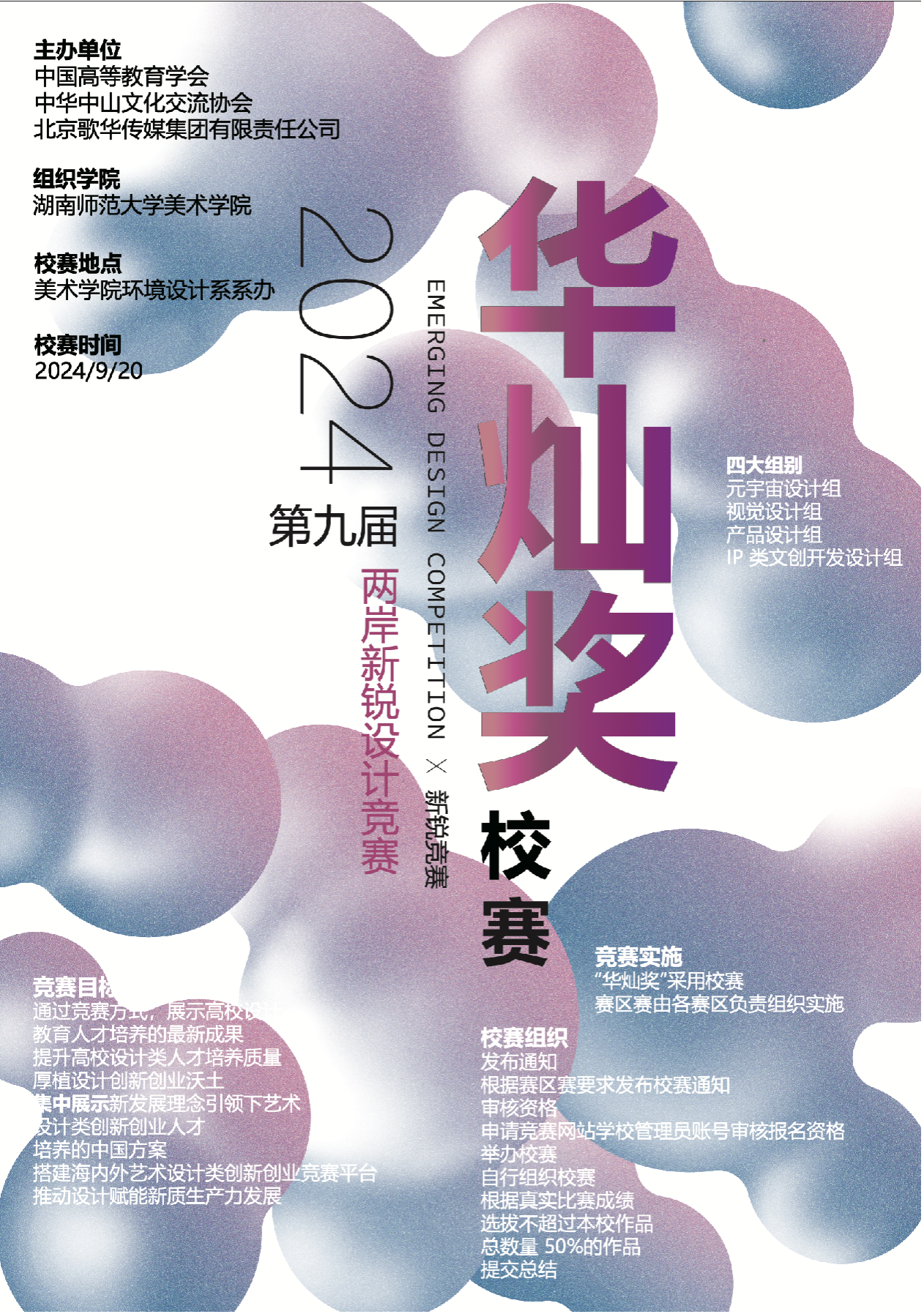 注:两岸新锐设计竞赛·华灿奖的主办单位为中国高等教育学会、中华中山文化交流协会和北京歌华传媒集团有限责任公司。此项竞赛已入选中国高等教育学会发布的《全国普通高校学科竞赛排行榜》和《全国普通高校教师教学竞赛项目》,是高校公司产品改革和创新人才培养的重要竞赛项目之一。