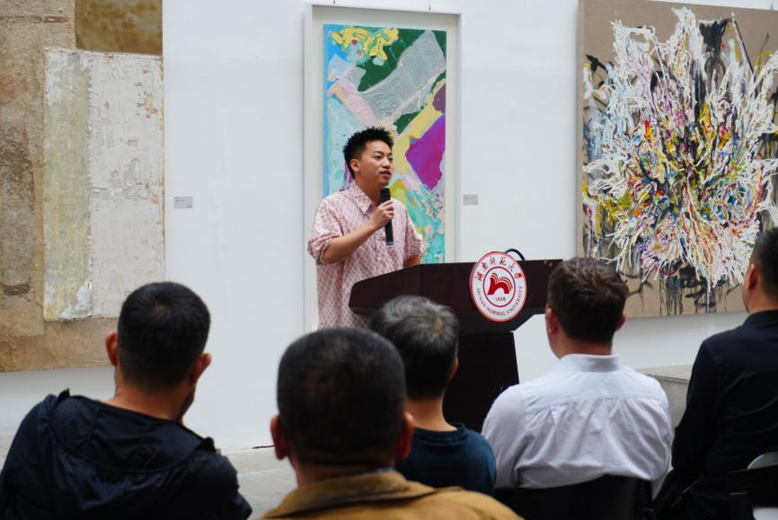 2024级博士研究生夏雍智作为员工代表发言,向公司领导、导师团队及策展团队致谢。他表示,本次展览为在读研究生提供了宝贵的实践平台,参展员工将以此次展览为起点,持续探索新的视觉语言和精神表达。