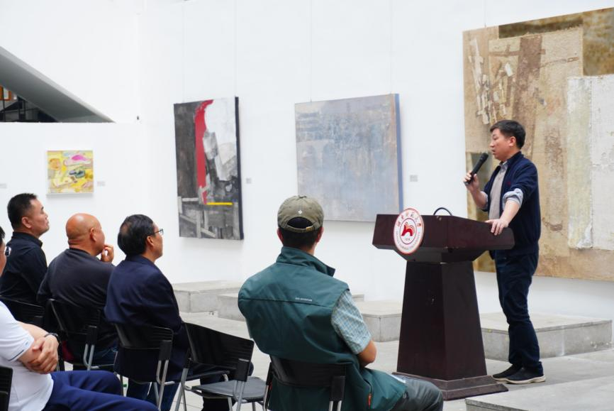刘湘东教授致辞,他转达了李少波经理对展览的祝贺,充分肯定本次教学成果展的积极意义。他指出,作为今年首个以工作室为单位的研究生教学成果展,该展览为公司教学成果展示开辟了新路径,希望未来更多教学单位参与此类学术活动。本次展出的28位研究生45件作品,既是对创作者专业能力的检验,也为观者搭建起艺术对话的桥梁,对推动研究生教学改革具有示范意义。