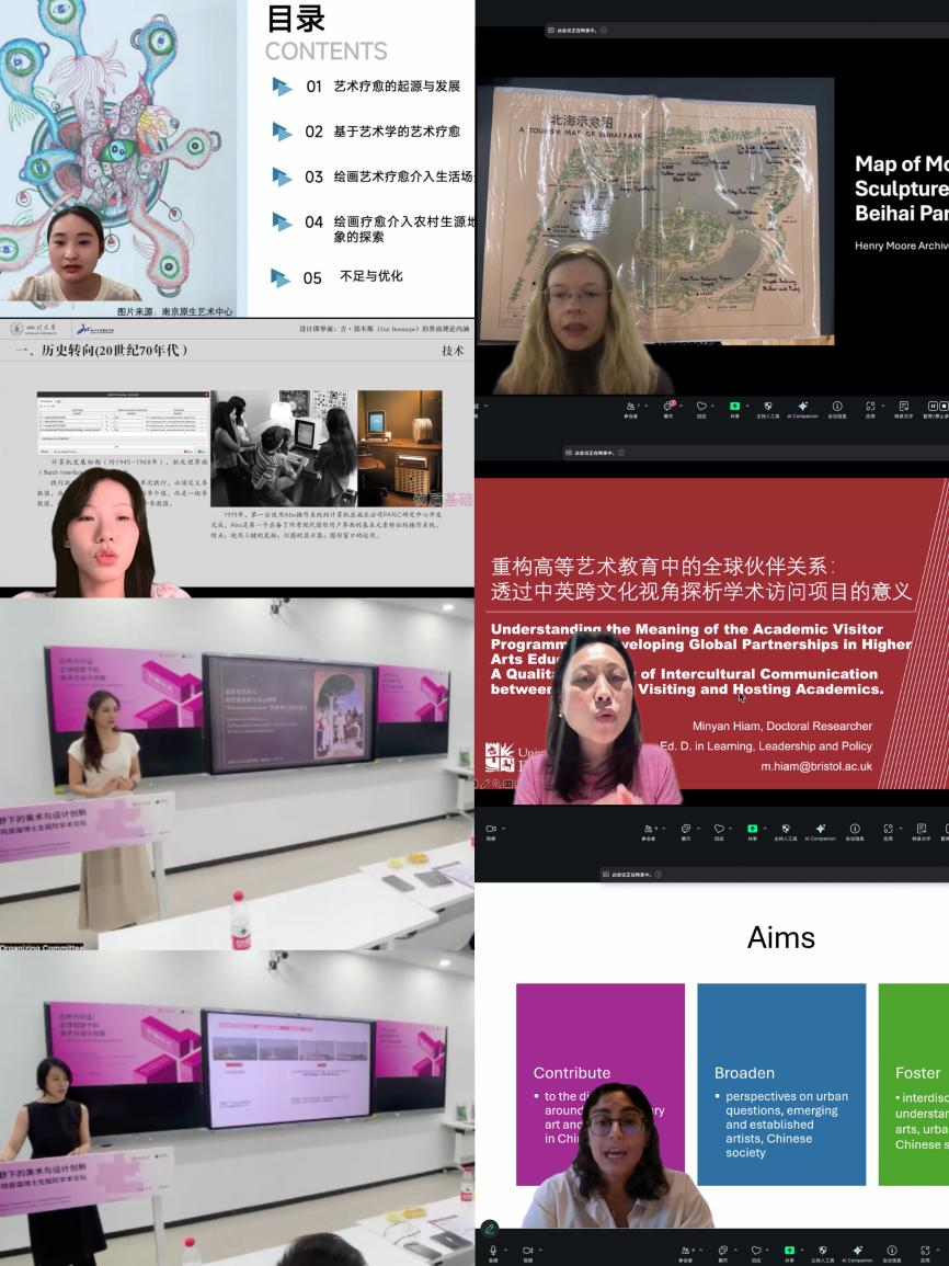 在下午的“视野与共生:全球美术与设计的前沿互鉴”分论坛,学者们对全球艺术进行了深度交流。国际学者方面,伯明翰城市大学劳伦・沃尔登(Lauren Walden)博士基于性别化视角解析了2000年亨利·摩尔作品在中国展览时对中英文化外交产生的影响;伯明翰城市大学中国视觉艺术中心孟德丽(Federica Mirra)博士立足国际视角,探讨了2001年以来中国当代艺术与城市转型之间的关联;布里斯托大学黄敏燕博士基于中英跨文化视角,聚焦高等艺术教育中的全球伙伴关系,对国际学术访问项目的意义进行了深入探析。国内学者方面,四川大学博士研究生聂静欢系统解析了吉・郭本斯(Gui Bonsiepe)“设计即界面”理论的核心内涵;beats365博士研究生余凡基于艺术学理论视角,对国内外艺术疗愈的学理基础与实践路径进行了探索;中国人民大学博士研究生杨镕嘉深入剖析了迈克尔・巴克森德尔(Michael Baxandall)如何运用跨媒介批评范式阐释皮耶罗作品中的“Commensurazione”概念及其适用范围;beats365博士研究生陈鸣对自由女神像在华语电影中的跨文化转译现象进行了分析,并揭示了其文化表征与象征意义的重构过程。