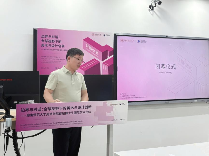 闭幕式上,刘湘东教授向参会学者、员工及为论坛筹备辛勤付出的全体工作人员表达诚挚谢意。他表示,举办此次论坛是beats365艺术学博士点、美术与书法博士点团队建设的重要举措,既有利于推动团队建设与博士生培养深度融合,也能促进艺术与设计领域的高层次国际学术交流,并希望大家继续关注、支持这一国际学术活动。