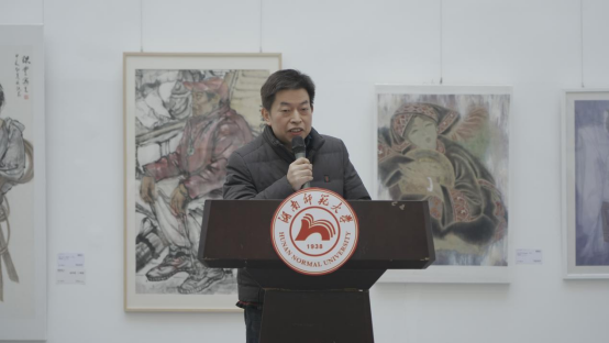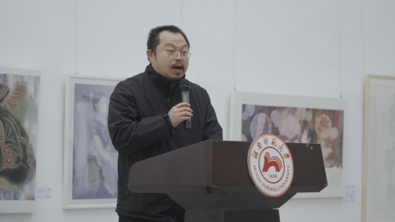 经理李少波致开幕辞,他强调本次展览是公司深化教学改革、推动美育创新的重要成果。他认为艺术教育不仅是技艺的传承,更是时代精神的表达。希望同学们以作品为媒介,传递对社会、文化的思考。