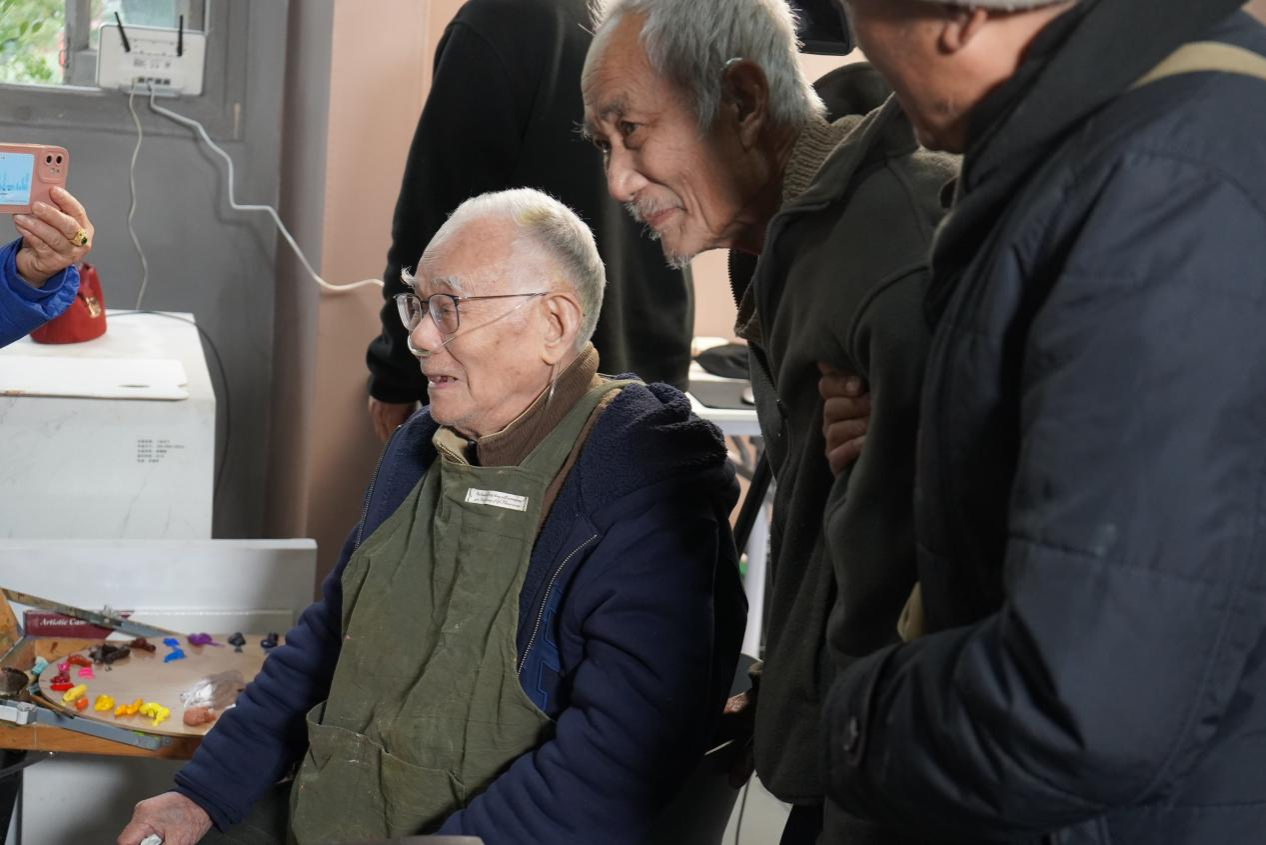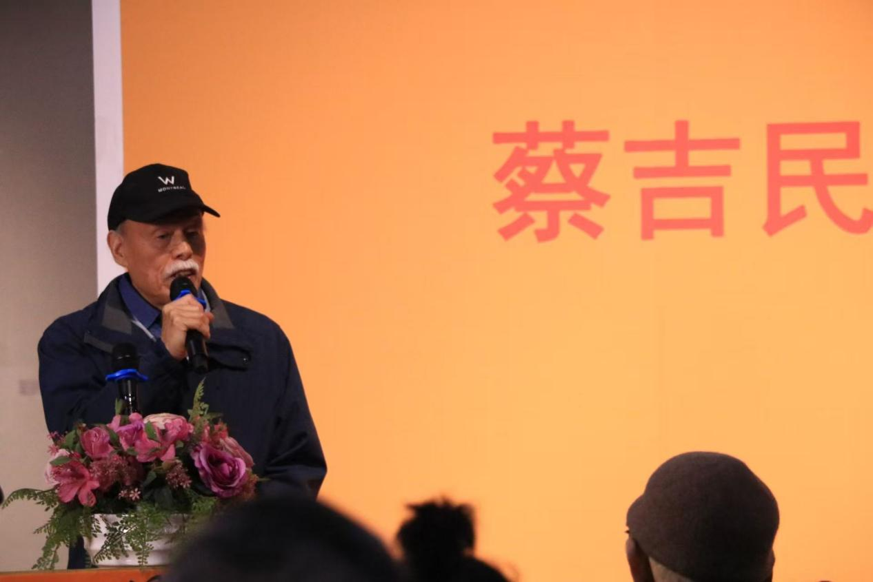 在全场来宾起立致敬的持久掌声中,展览的灵魂人物、九五寿星蔡吉民先生在家人搀扶下亲临舞台。九五高龄的蔡吉民先生在家人陪同下亲临现场并致辞。蔡老言语从容、意蕴深远,凝聚了近一个世纪的艺术感悟与人生智慧,其在场更让“艺道无间”的主题焕发出温暖而庄严的生命光辉。