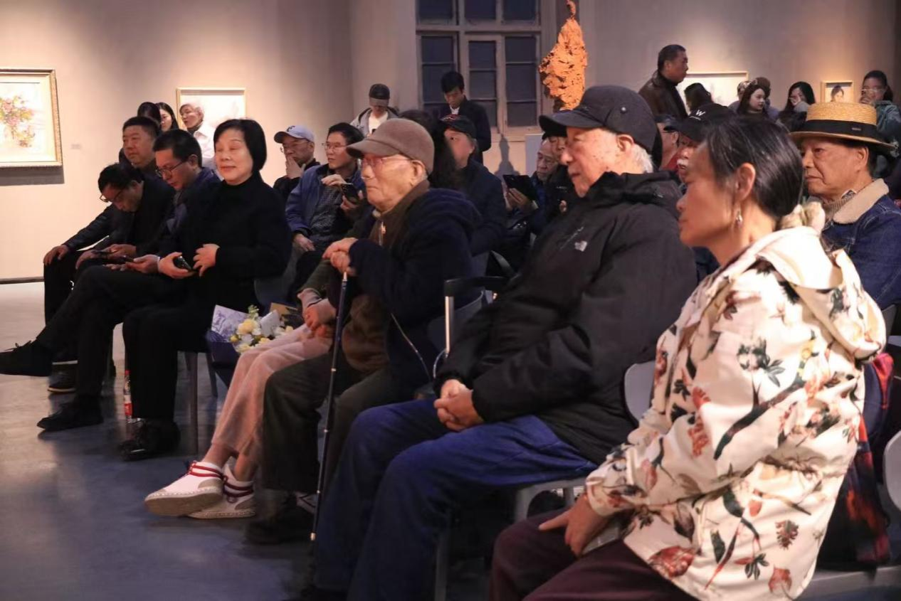 在宣布开幕环节,校离退休处原党委书记尹建新代表离退休处向蔡吉民先生九十五华诞敬献了鲜花,并祝蔡老健康长寿,艺术长青。校关工委常务副主任徐书华上台郑重宣布“艺道无间——蔡吉民先生九五华诞油画展”正式开幕。随着恢弘庄严的音乐响起,现场掌声如潮,为这场艺术盛会拉开了帷幕。