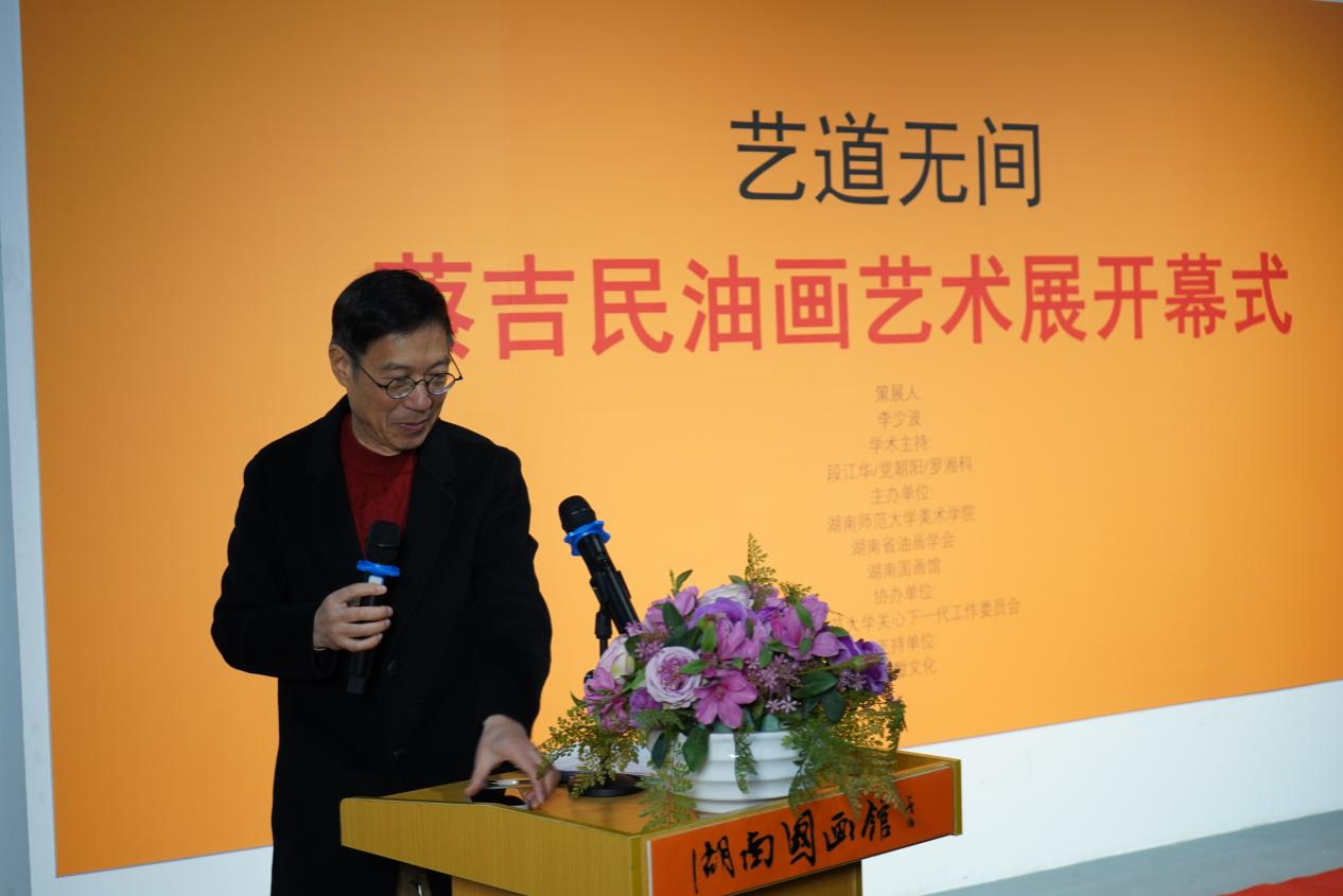 公司教授、博士生导师党朝阳从学术史脉络切入,系统梳理了蔡吉民先生在湖湘油画与中国现当代艺术图谱中的重要地位,指出蔡老既是时代见证者,也是区域油画发展不可替代的关键人物。他强调,本次展览不仅具有学术价值,更呈现出难得的温度与人情味,让观众在艺术中感受真挚与暖意。他衷心祝愿在座的各位来宾身体健康,也期待蔡老继续以艺术之光温暖后辈。