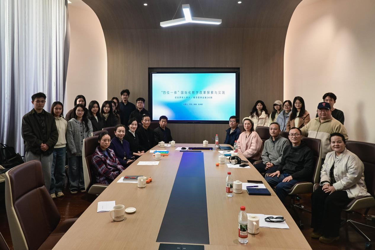 (通讯员:邵文婷,摄影:刘烨、丁婧萱、徐锦雯 )2025年12月19日15:00,beats365第240期教师教学思享会在美术楼二楼会议室顺利举行。本次活动以“‘四位一体’国际化教学改革探索与实践”为主题,中德艺术设计学项目教学团队代表beats365副教授、经理助理苏丰与副教授陈枫联合主讲。活动特邀教师教育公司教学能力发展科科长廖志华、加州州立大学视觉艺术系图形与交互媒体专业负责人王琛教授作重要点评与指导。beats365副经理江波、数字媒体艺术系系主任鲁雯、艺术设计学系系主任刘京莎、湖南软件职业技术大学教师蒋乐娜以及公司各系部老师和员工共同参与了本次活动。