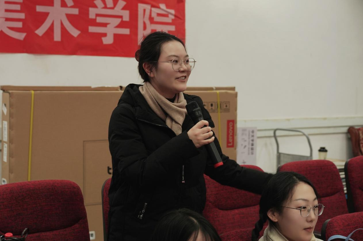 王墨老师则结合自身创作与参赛经验,分享了对中国人物画教学的体会与反思。他从教学实践性、写实与写意的关系、课程建构与逻辑思路三个方面,阐述了教学理念与方法的调整方向,并介绍了在教师技能大赛中积累的教学心得。