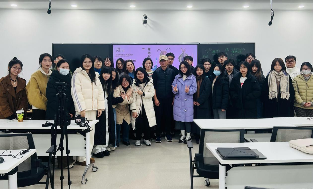 12月25日至12月31日,王琛教授面向全院师生,在设计楼207教室组织开展系列教学活动。本次活动以“教育即生长:在AI的寒武纪,重塑设计的意义”为核心主题,通过两场专题讲座与三天工作坊,逐步形成“理论引导—方法凝练—实践创作”的完整教学闭环,系统展现了其在人工智能与设计交叉领域的教学理念与实践成果。