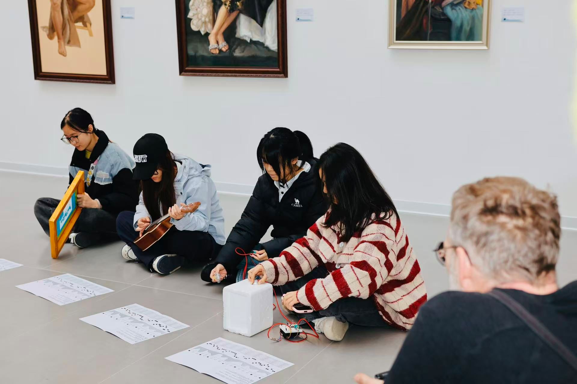 (通讯员:金亦韬)2025年12月8日,由法国知名多媒体艺术家劳尔·博尔(Laure Boer)主持的“Image=Music”国际工作坊在公司正式启动。在为期两周的课程中,2024级艺术设计学专业员工通过“倾听·转译·构建·演绎”四个阶段,系统完成了从声音采集、视觉转化到乐器制作与现场演出的完整创作流程,开展了一场深度跨学科的艺术创作实践。