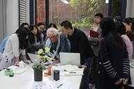 在具体的项目设计中,穆文·凯兰斯基结合实际案例,带领员工们从前期的企业调研做起,梳理企业内部结构的逻辑关系,思考论证案例。他强调实地考察和深度研究是构建宏观感知的有效途径,并鼓励大家充分融汇东西方文化进行深入创作。同学们积极参与互动交流、集思广益,对企业品牌形象的设计创作展开了系统分析和深入探讨。