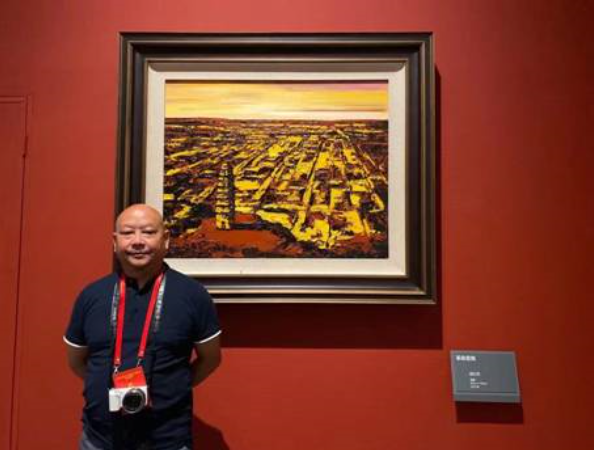 段江华教授与其作品《革命圣地》合影留念