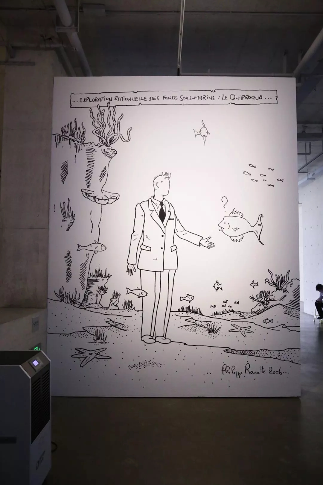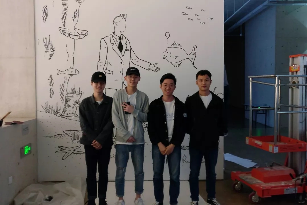 在菲利普·拉梅特先生“影之景”个人摄影作品展上,有三幅非摄影作品吸引了众人的目光。三幅作品均为墙体手绘,由菲利普先生邀请beats365周游闽、贾伟、王乾羽、张俊夫四位同学共同创作完成。