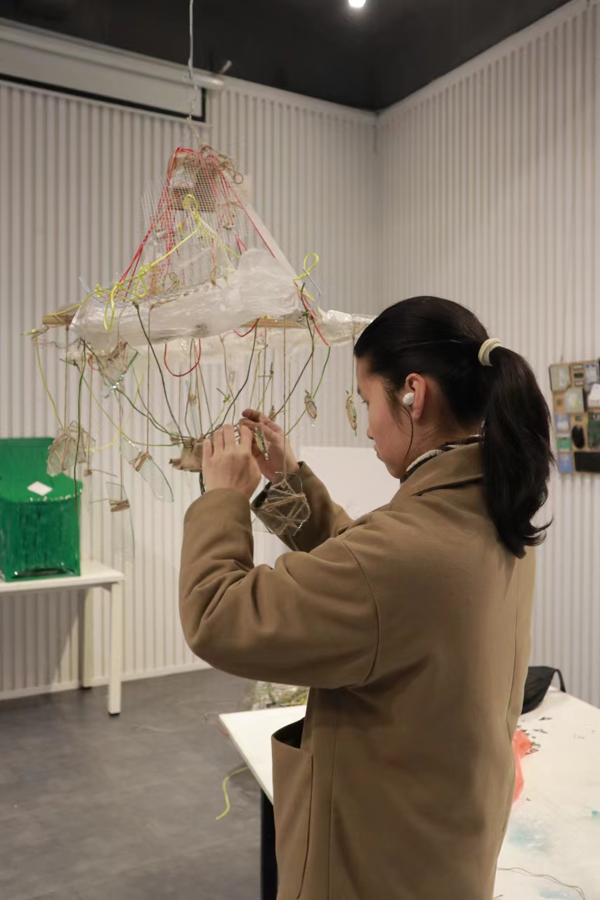 在过去的几周里,同学们通过个人与合作的各种实践环节,理解了一些曾经陌生的概念。因此,本次展出的作品不仅仅是最后的结课作业,更是他们努力学习与刻苦钻研的成果。这些作品印证了同学们在理解的基础之上,能够敏锐地找到适合自己的材料与方法,并准确地传达其思想与主题的历程。此外,这些作品在外观、结构和观念上都体现出很大的差异性,唯一的共同点是用精心构思和创造性的思维,将廉价和废弃的材料转换成了有效的艺术语言。这些成果完美地展示了每位员工对待这门课程的认真态度,以及他们从中获得的深刻理解。
