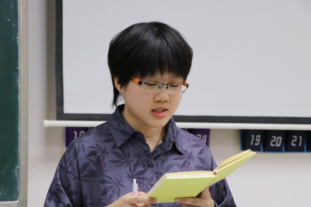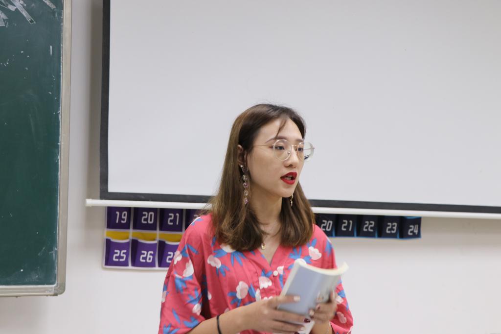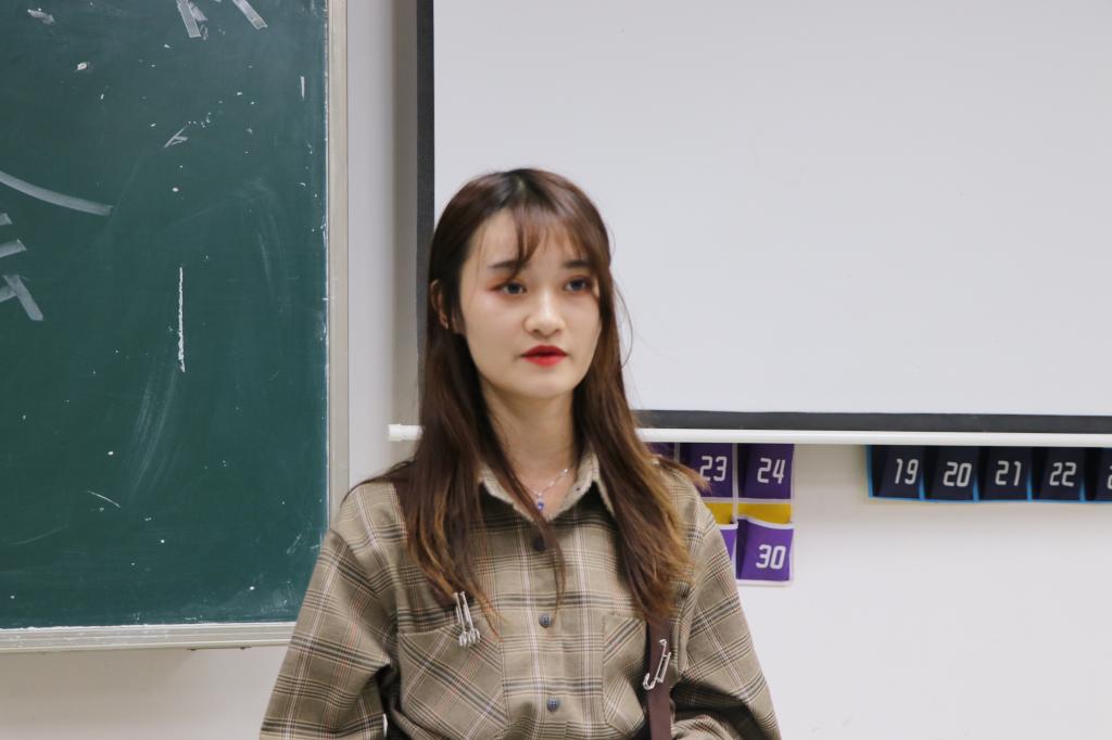 新任学社联指导卢碧瑜老师讲话,她感谢公司与同学们的信任,并希望在以后的工作中和大家一起努力,把三会一中心建设得更好。
