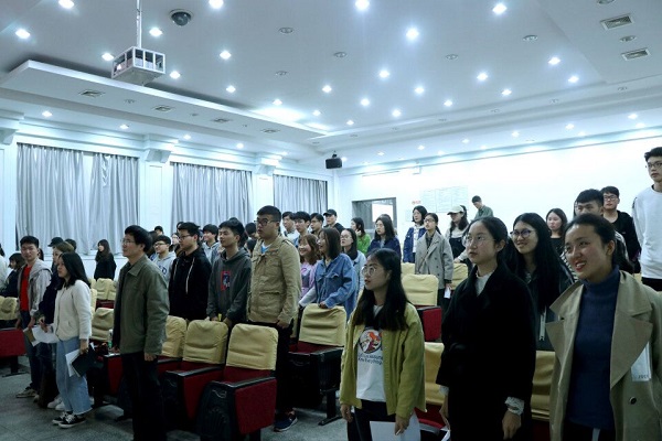 活动在悠扬的团歌声中拉开了序幕。三位主讲人围绕主题,并结合大学期间的所闻所感讲述自己在学习生活中是如何学习新理论,践行新思想的,并从自身出发鼓励学弟学妹们积极向党组织靠拢,争做社会主义合格建设者和可靠接班人。