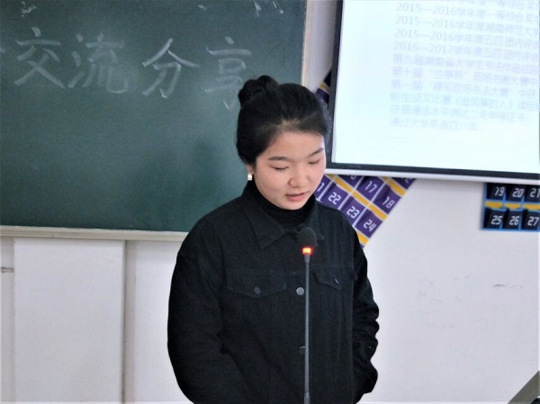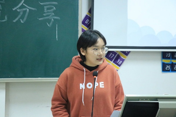 随后刘雅楠围绕“大学四年要做什么,目标是什么”为题展开分享。她通过分享自身大学经历,建议新生应建立明确的学习目标,提出“早制定目标早执行”的观念,随后分别讲述了以考研和培养综合能力为目标的学习方式,并提醒新生要注重英语的学习、保持健康的生活状态,最后希望同学们找到目标,珍惜老员工活。