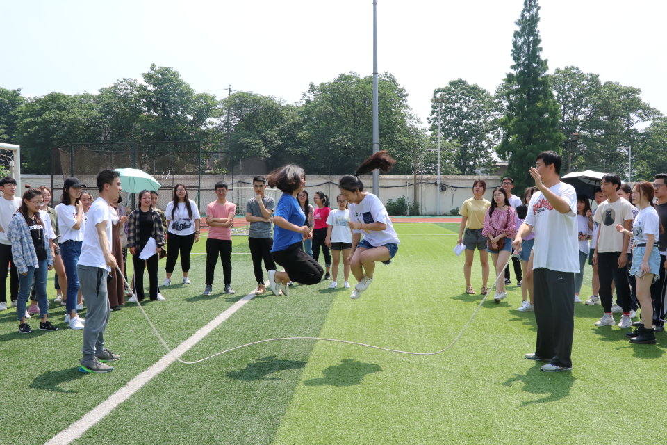 本次素质拓展分为四个项目,分别是传递呼啦圈、车轮滚滚、跳长绳、同心鼓,裁判宣读完游戏规则后,比赛正式开始。在激烈的加油声与欢呼声中,比赛顺利进行,同学们互相配合,互相鼓励,都为夺取好名次而努力着。几位老师也和同学一同参与比赛,现场气氛十分活跃。