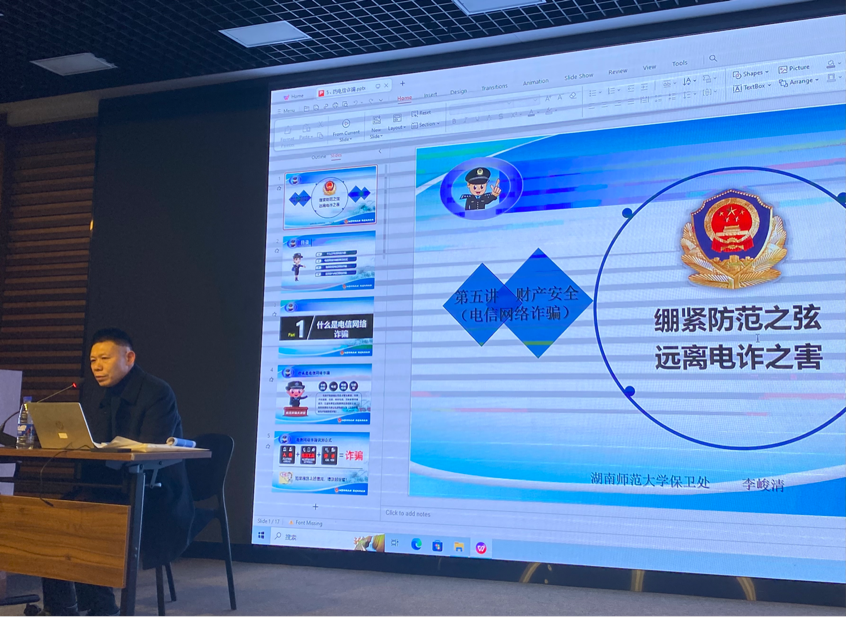 为进一步提高同学们的安全防范与自我保护意识,增强对各类安全案件、事故的识别应对能力,3月6日晚上,我院有幸邀请到了校保卫处副处长李峻清老师,为2023级新生做安全教育专题讲座。