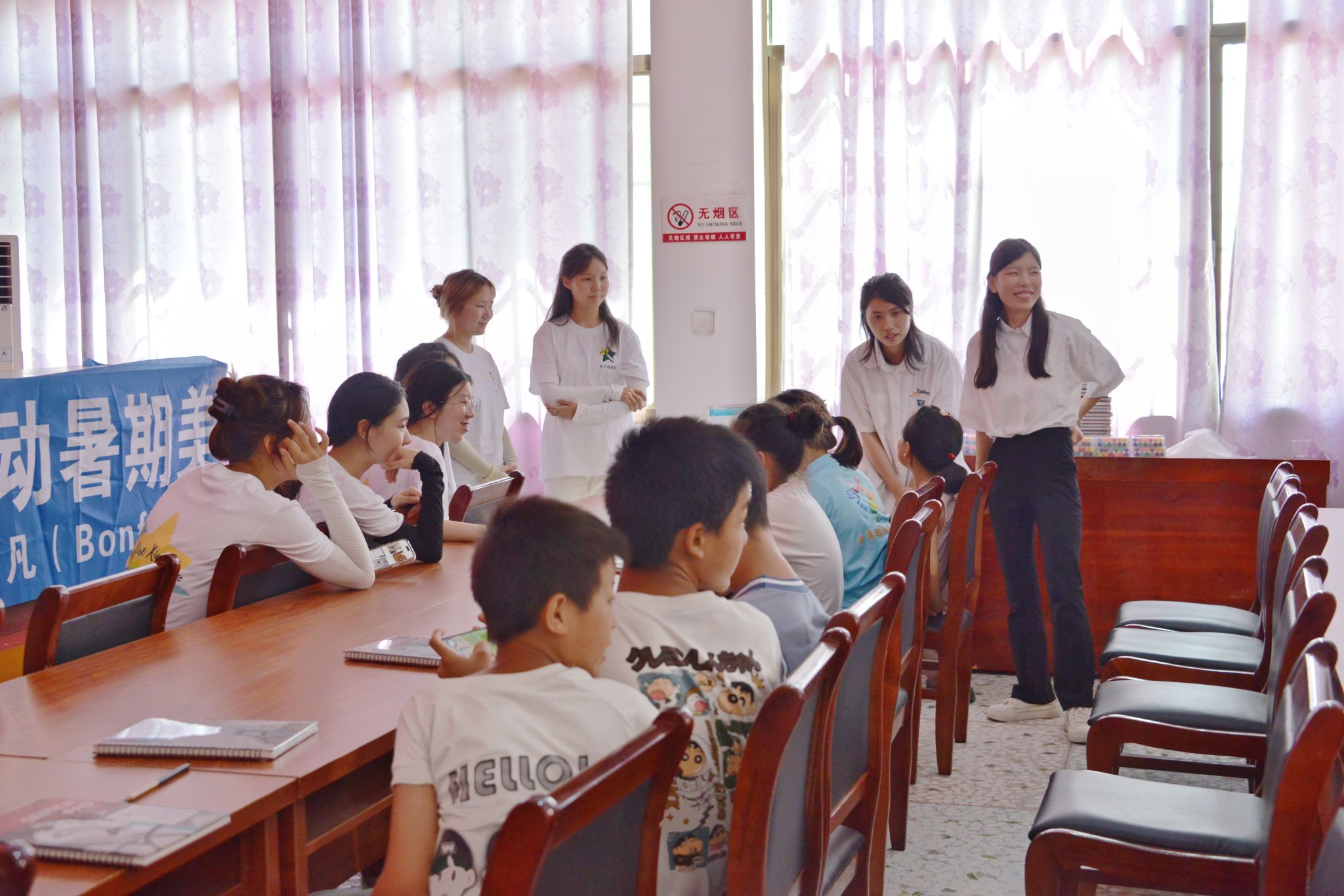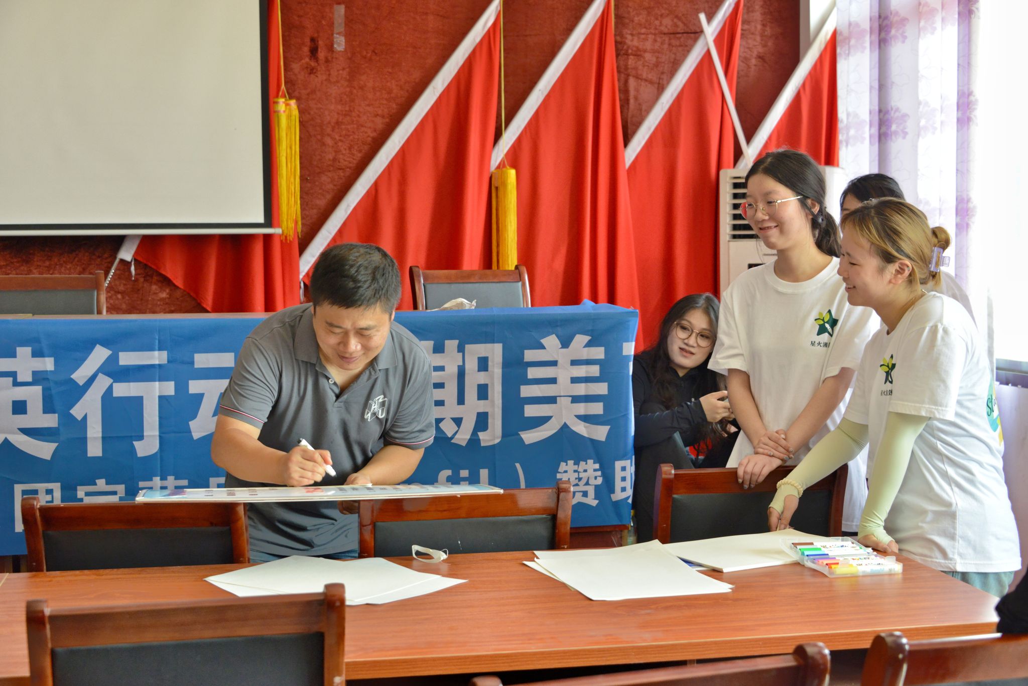实践队为开营仪式做准备工作
