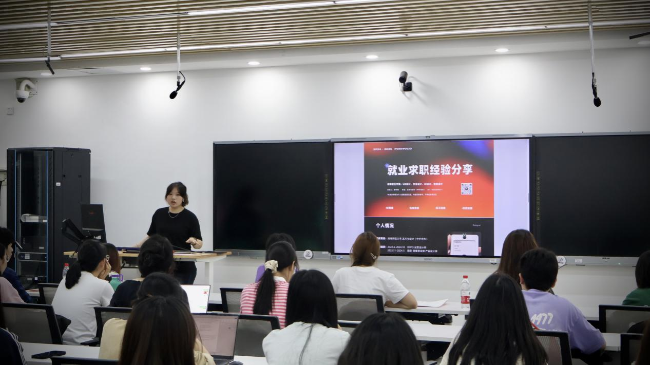 陆宇萌同学结合自身丰富的实习经历,从美团吃货节视觉运营、OPPO海外广告优化到兴盛优选UI改版等多个项目,为同学们展示了校园生活与社会实践的差异。在春季招聘中,她成功斩获OPPO、得物等五家知名企业的录用通知。陆宇萌从就业方向选择、时间规划及实习建议三个方面,为同学们提供了全面而实用的就业发展指南,树立了优秀的实习典范。