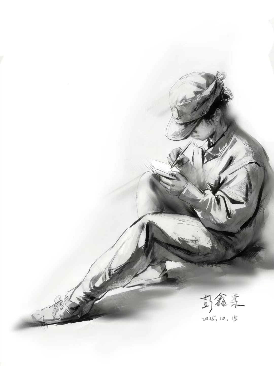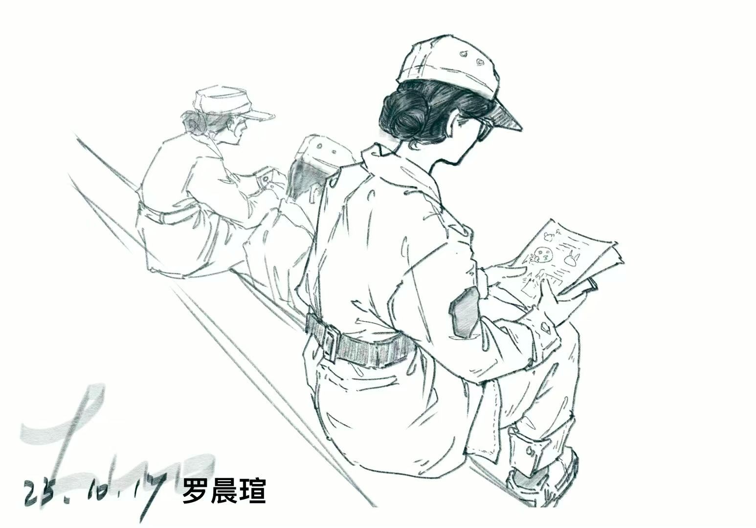 画笔与纸张,是他们参与军训的独特方式。有人以素描细致勾勒标准军姿,线条起落间复刻着军人的挺拔;有人专注捕捉光影变化,让训练场的明暗成为画中生动背景;还有人用速写记录同伴的笑容与坚持,将瞬间的感动定格成永恒。在他们的作品里,正步的节奏化作线条的韵律,口号的力量融入色彩的温度,每一幅画都是军训时光的真实记录,更是青春热血的鲜活注脚。