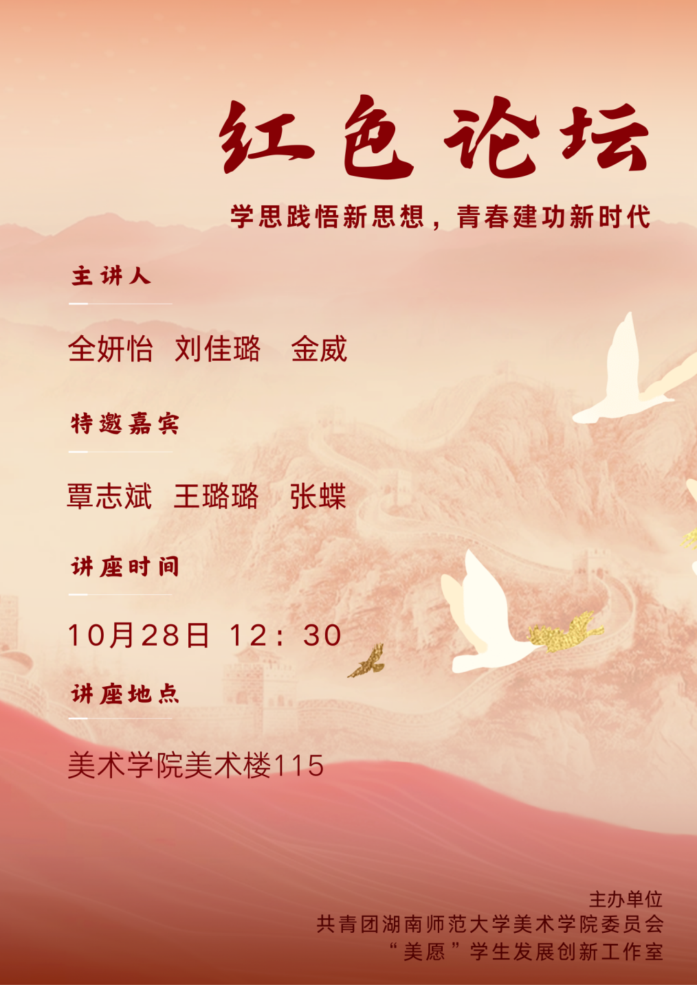 (通讯员 唐斯斯 蒋语卉 袁嘉俊)学思践悟,汲取榜样力量;青春建功,绘就时代新篇。10月28日中午,我院第807期红色论坛在美术楼举行。 公司党委副书记覃志斌,院学工办主任、青年传媒中心指导老师、2024级辅导员王璐璐,院团委指导老师、2023级辅导员张蝶出席。团委办公室负责人何思颖主持。