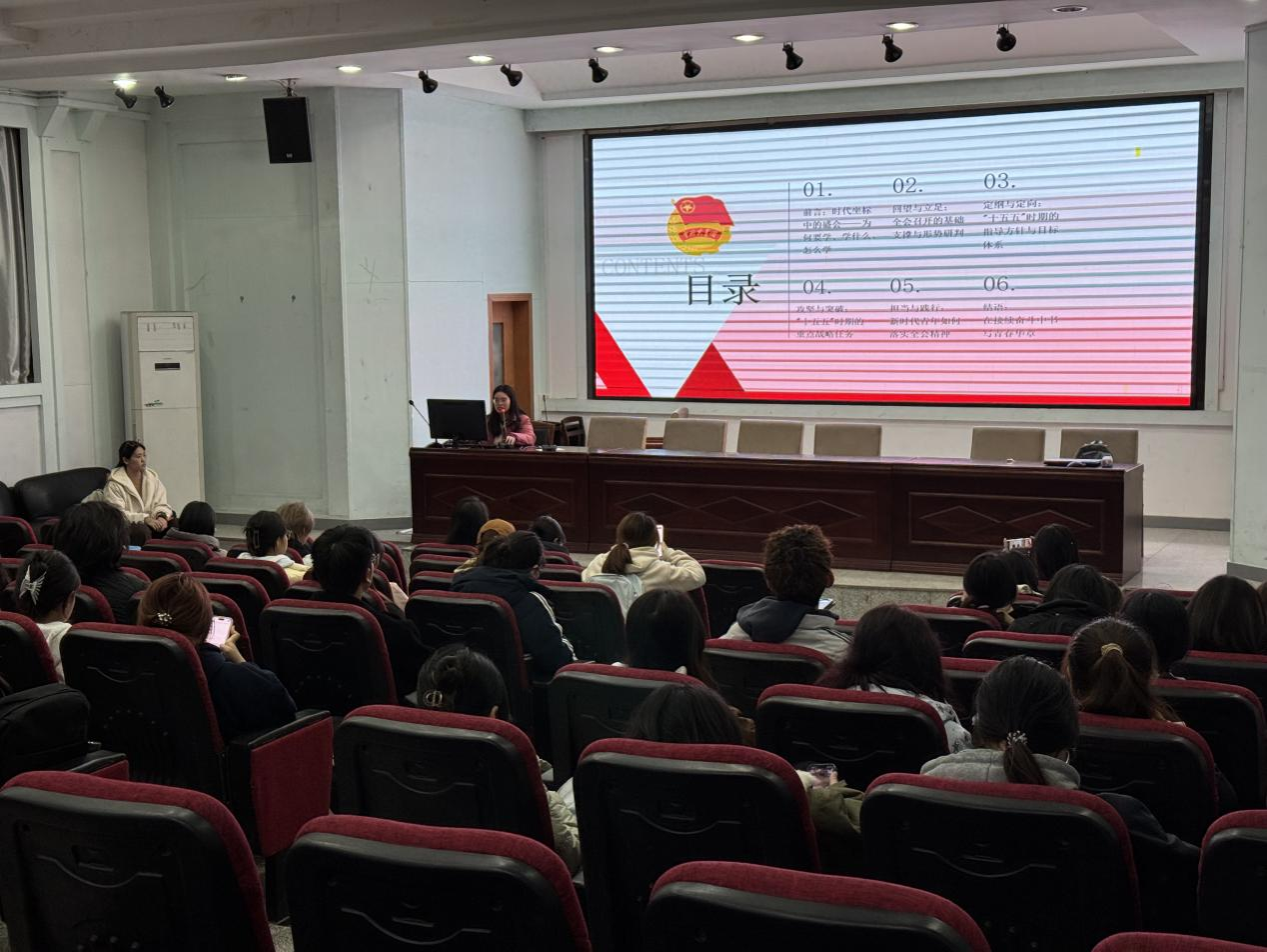 2023级研究生吴婷作为本次论坛主讲人,为大家深入解读二十届四中全会精神,探讨新时代青年如何在国家“十五五”发展新征程中勇担使命、坚定信念、将青春力量融入时代浪潮。
