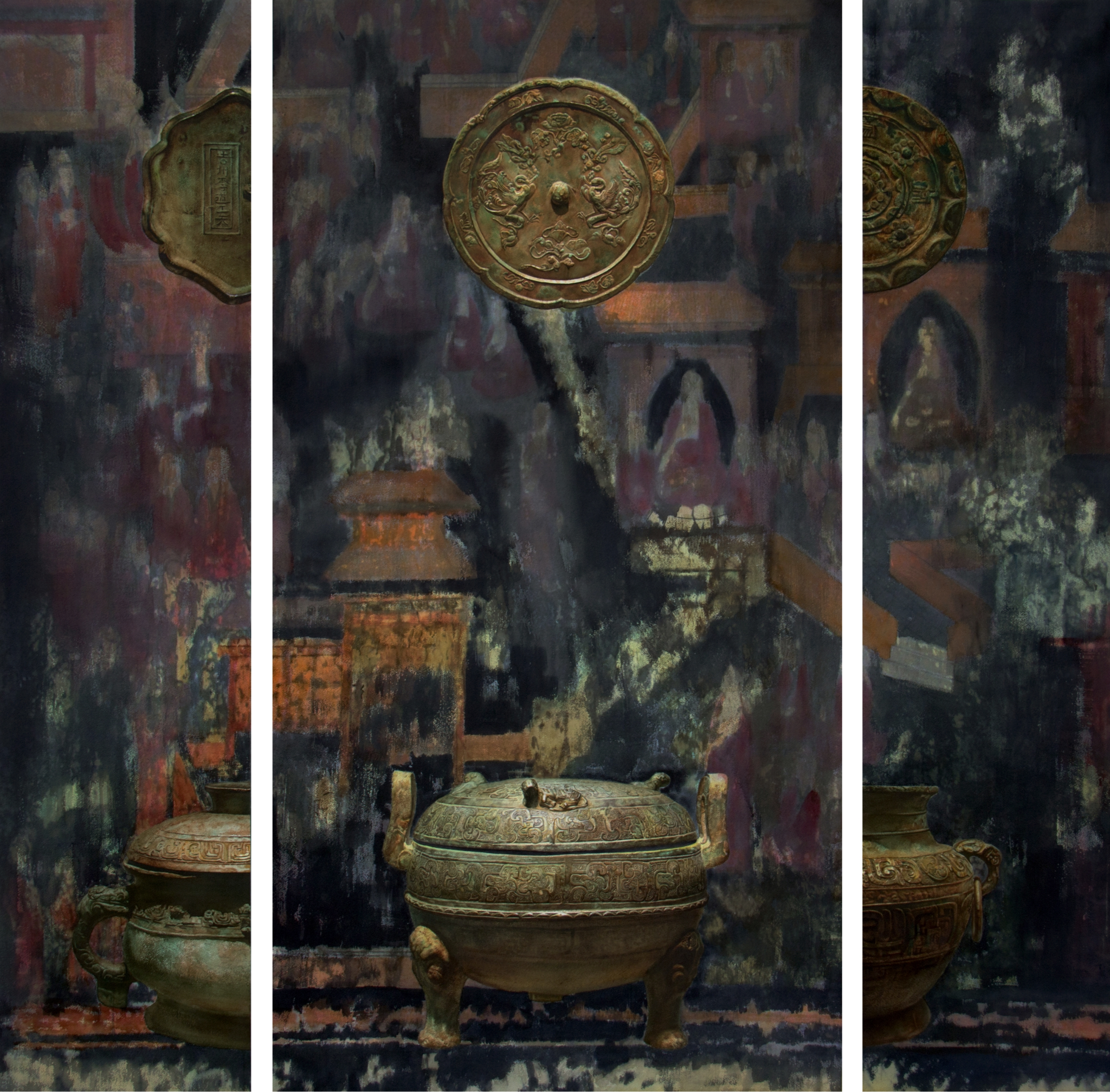 水彩画《青铜·佛语》 150cmX150cm 2014年