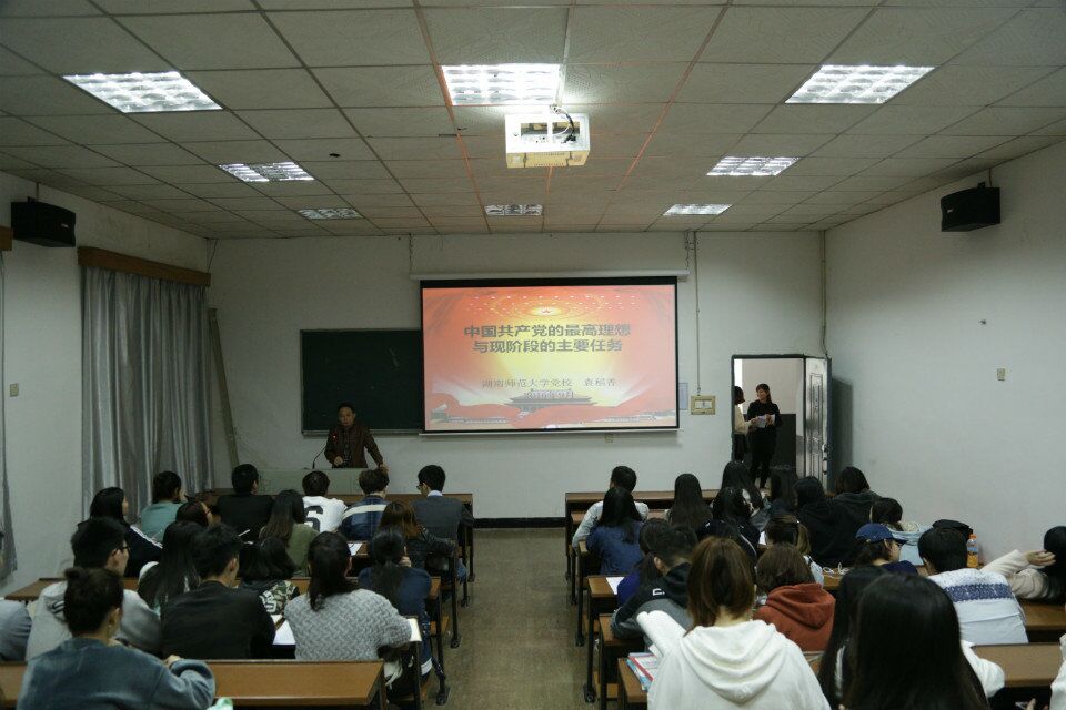 典礼结束后,袁稻香为同学们讲授了第一堂党课——中国共产党的最高理想与现阶段主要任务。