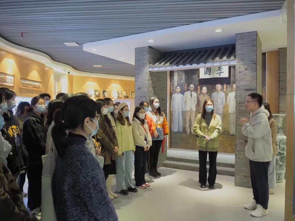 最后全体学员在师大校史馆校训前进行集体合影,参观结束后学员分小组进行学习讨论。