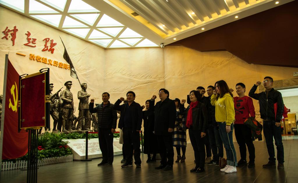 来到文家市后,首先参观了秋收起义纪念馆,全体党员重温了入党誓词。“我志愿加入中国共产党,拥护党的纲领,遵守党的章程……随时准备为党和人民牺牲一切,永不叛党”,纪铿锵有力的誓言响彻了整个大厅,让大家在心灵上接受了一次涤荡和洗礼。
