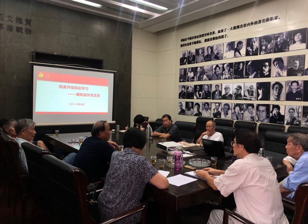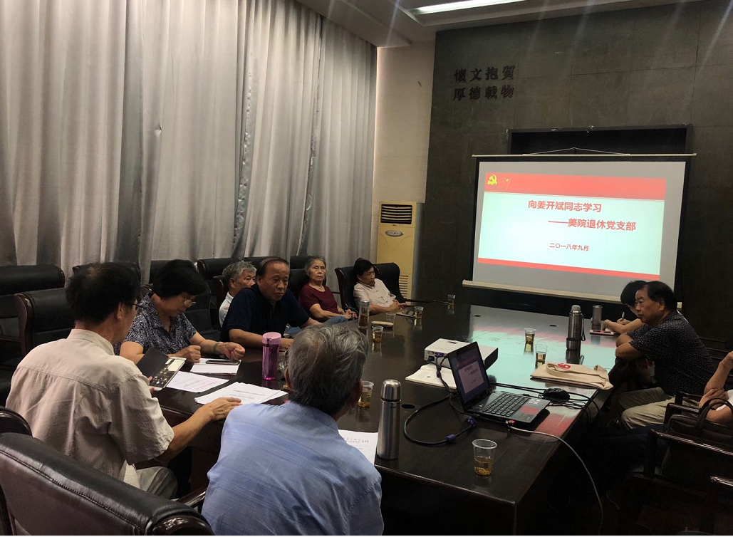 为响应党中央号召,公司退休支部于9月18日上午组织支部党员在美术楼二楼会议室开展向姜开斌同志学习的活动,由支部书记胡师正主持。