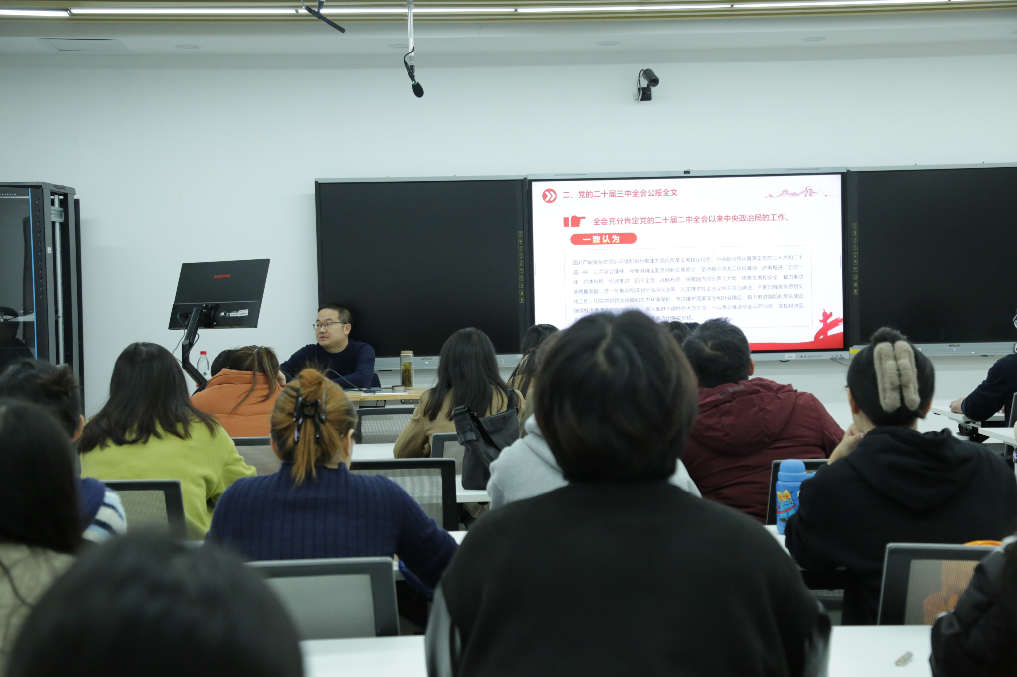 瞿理铜围绕党的二十届三中全会公报全文及《决定》的核心内容展开了深入细致的解读。他详细阐述了全会在提升党组织凝聚力以及引领单位业务高质量发展等方面所具有的深远意义,通过清晰的逻辑分析和生动的实例讲解,为与会人员提供了明确的理论导向和切实可行的实践路径,帮助大家更好地理解和把握全会精神的要点。