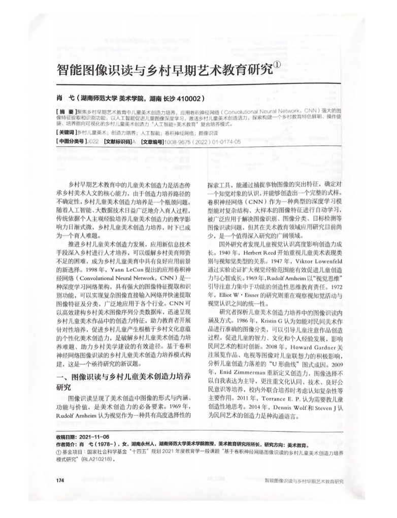 《智能图像识读与乡村早期艺术教育研究》发表于2022年第01期《美术与设计》