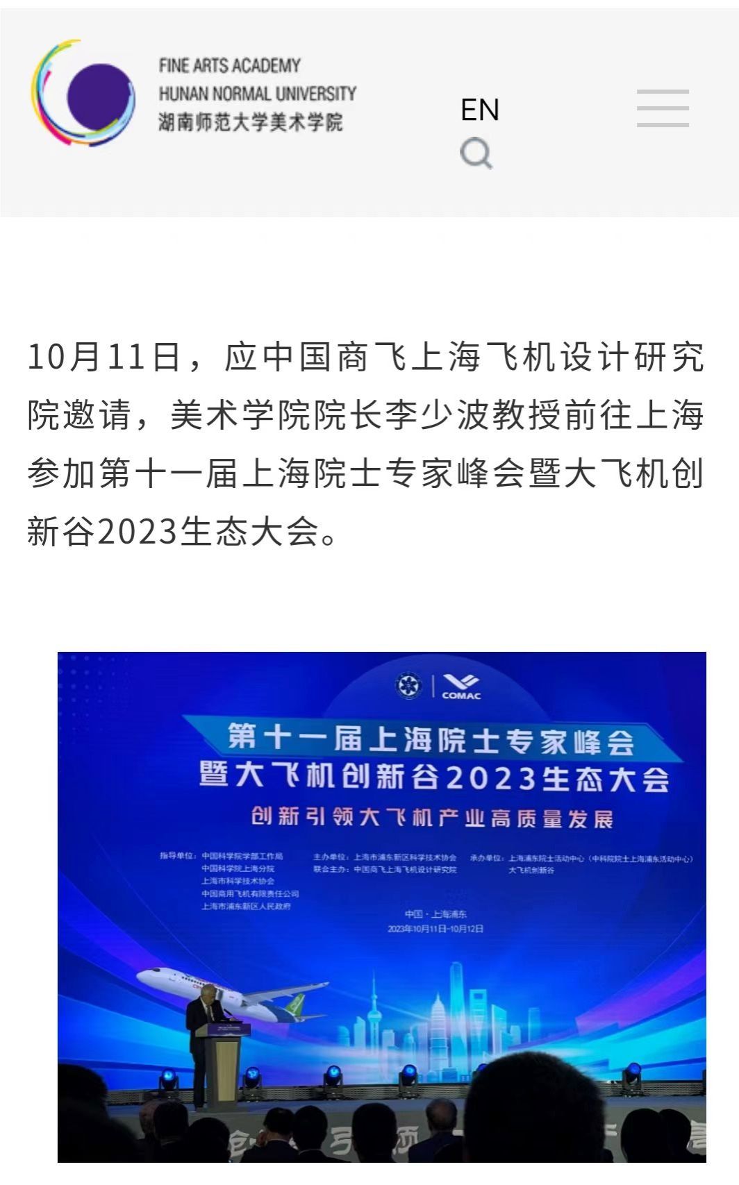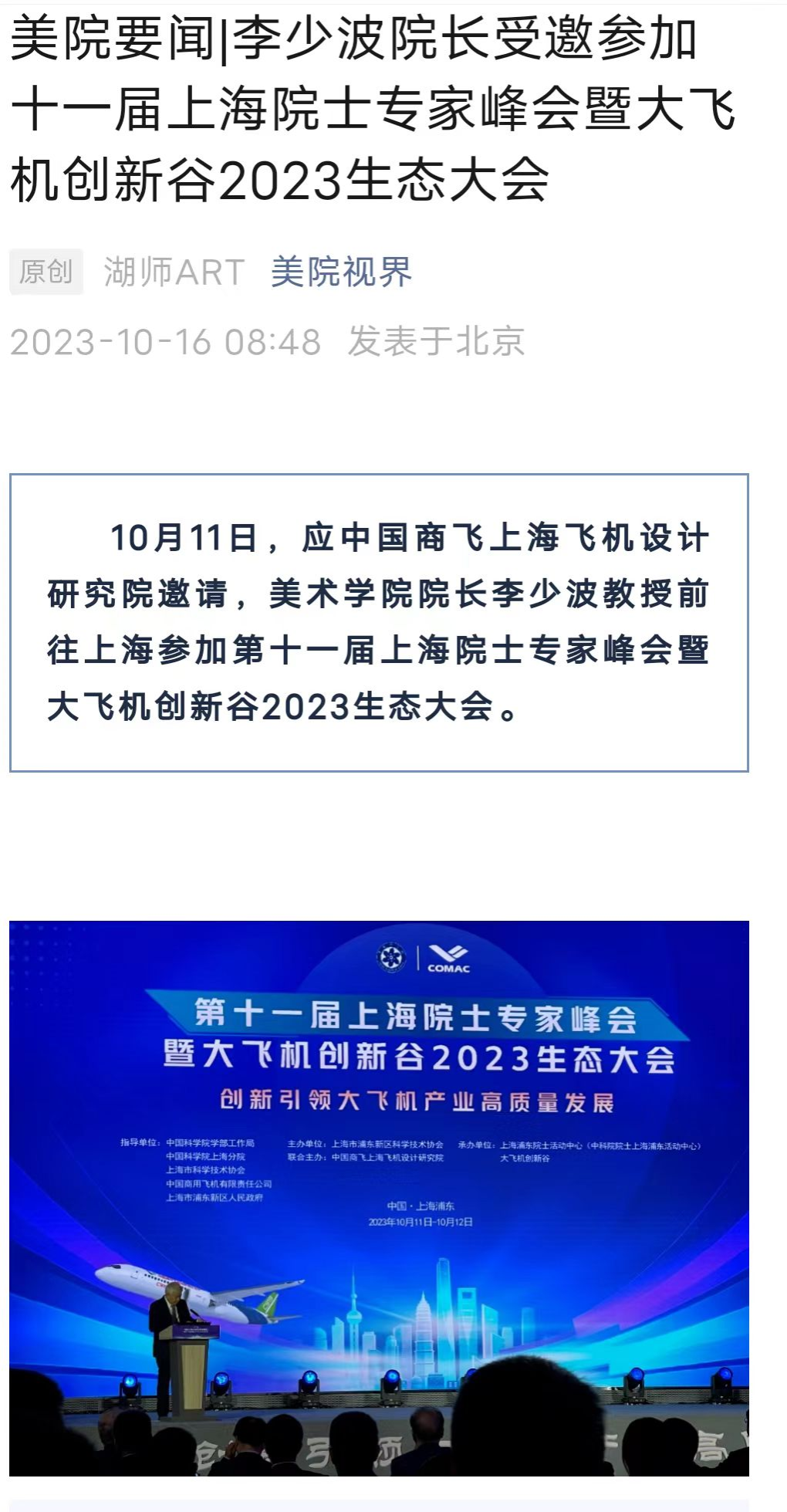 10月11日,应中国商飞上海飞机设计研究院邀请,beats365经理李少波教授前往上海参加第十一届上海院士专家峰会暨大飞机创新谷2023生态大会。