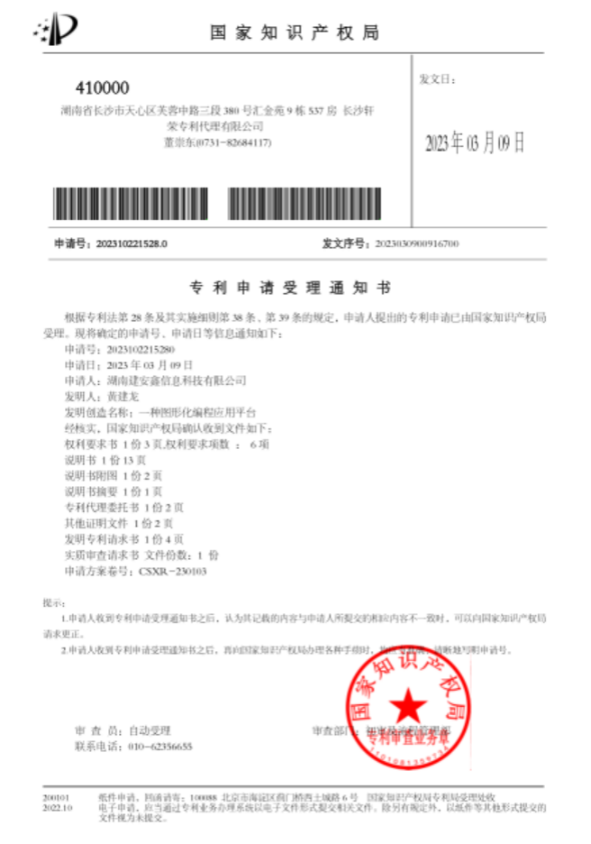 2023年获批中国发明专利“一种图形化编程应用平台”
