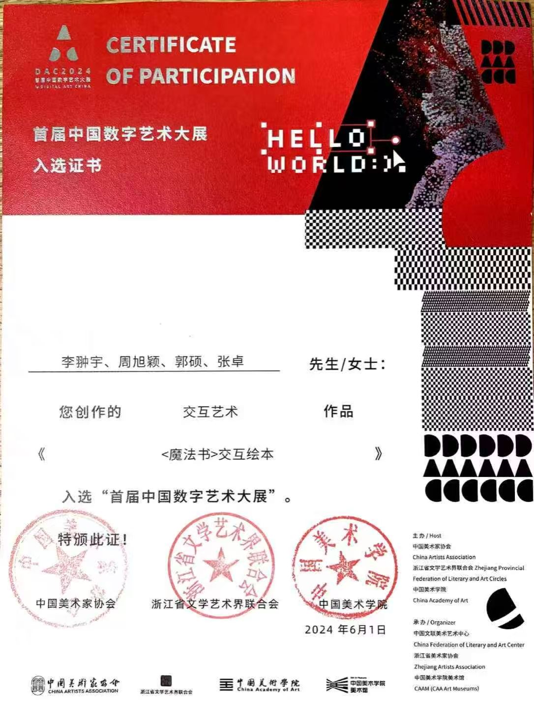 2024年5月《魔法书》数字交互绘本作品入选中国美术家协会主办的首届中国数字艺术大展