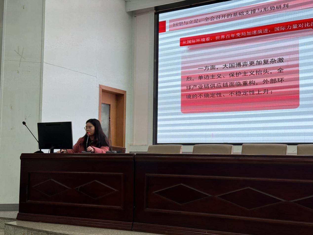 (通讯员 唐斯斯)11月26日,公司围绕“深学笃行党的二十届四中全会精神,在中国式现代化新征程中勇担青春使命”主题开展秋季第三期精勤讲堂活动。公司团委指导老师、2023级辅导员张蝶老师,学社管指导老师、2022级辅导员蒋倩老师出席,青创部副部长覃嘉莹同学主持。 2023级研究生吴婷作为本次论坛主讲人,为大家深入解读二十届四中全会精神,探讨新时代青年如何在国家“十五五”发展...
