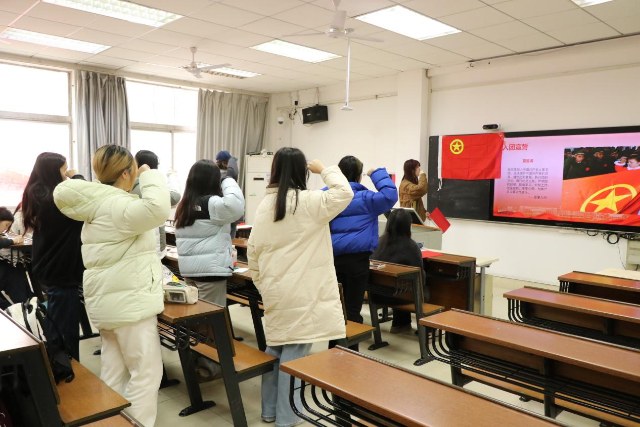 (通讯员 戴芷睿 袁嘉俊)12月15日下午,公司2025年入团仪式在设计楼208教室正式举行。本次仪式由院团委组织部负责人李周芊芊主持,院团委指导老师、2023级辅导员张蝶出席。仪式在庄严的中华人民共和国国歌声中举行。国歌奏毕,院团委基建部部长徐世鸿宣读新团员名单,新团员依次上台领取团员证、团徽,并完成团徽佩戴。李周芊芊对入团相关事宜作出说明,强调团徽所承载的政治属性,指...